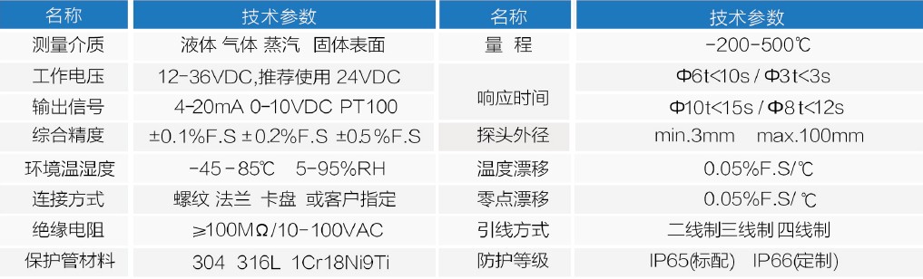 4.1xPT100、2xPT100、热电阻或热电偶自由选择;